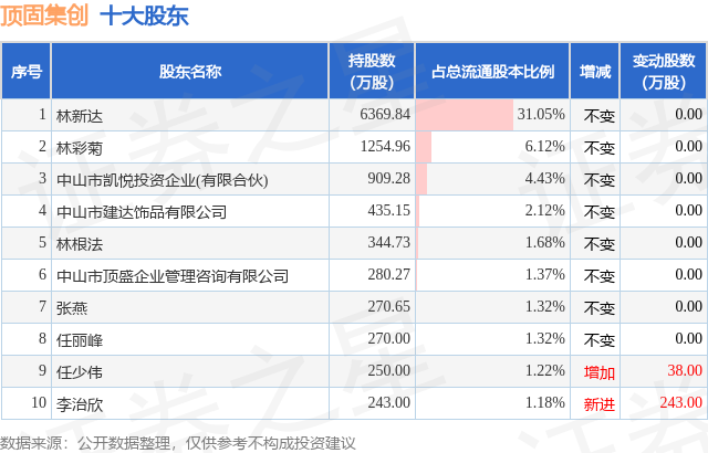根据顶固集创2025年中报公布的十大股东详情如下:股票配资最新消息